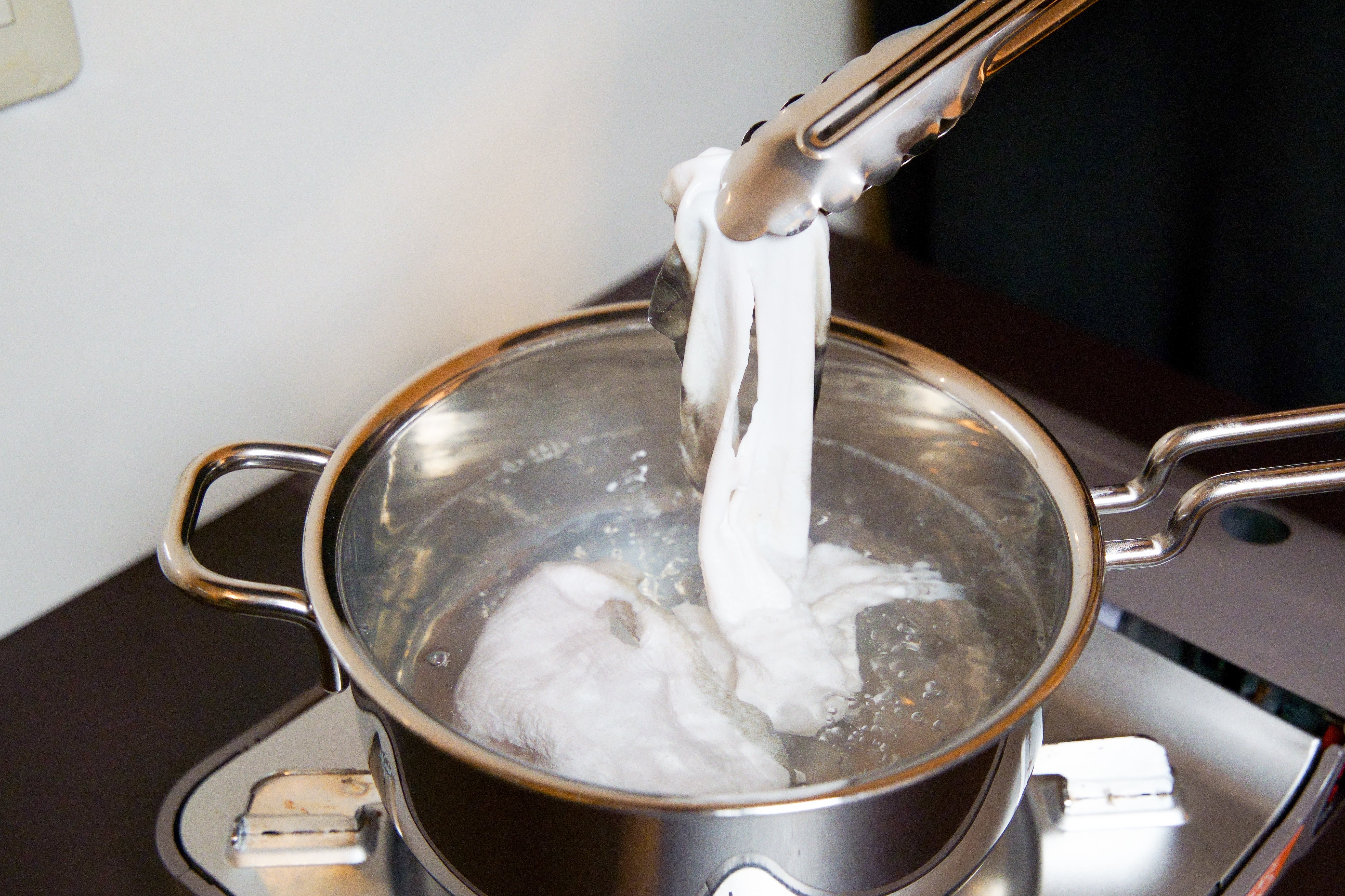 皮は少しでも茹ですぎるとベタつきやすいため、必ず先に氷水をご用意ください。